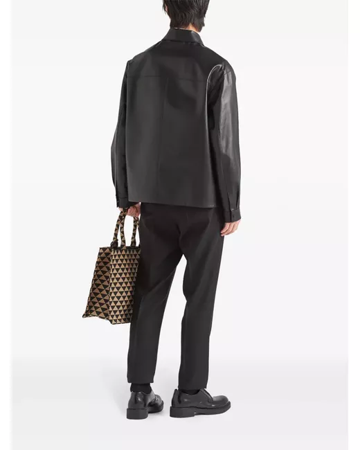 black front press-stud fastening press-stud fastening cuffs classic collar enamel triangle logo