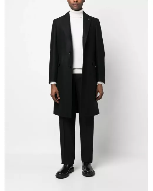 black wool/cashmere front button fastening chest welt pocket two front patch pockets notched lapels rear slit buttoned cuffs