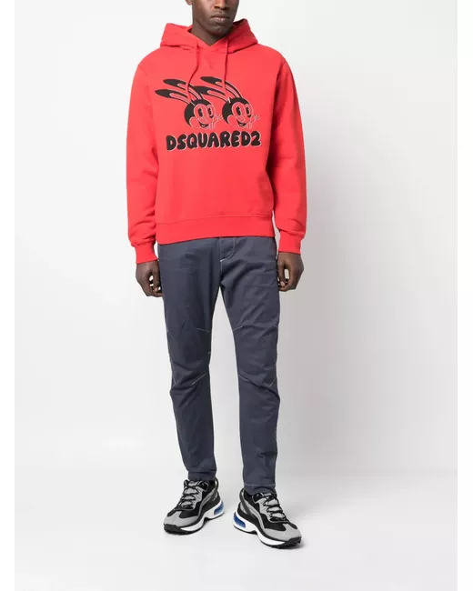 flame red cotton graphic print to the front long sleeves ribbed cuffs and hem slouchy drawstring hood