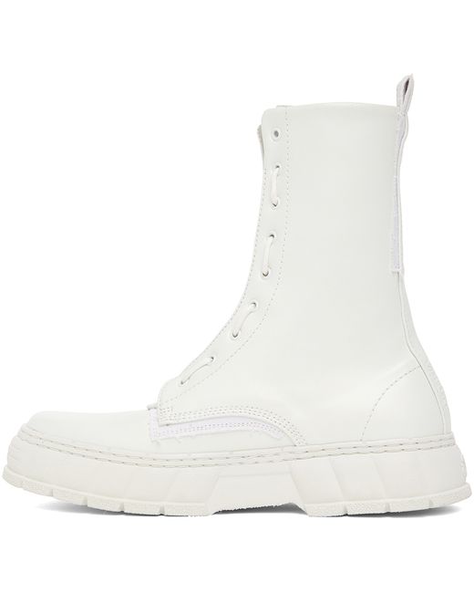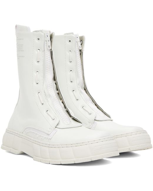 Calf-high PETA-certified buffed Appleskin™️ faux-leather boots in white. · Zip and lace-up closure · Logo printed at padded tongue · Pull-loop at heel collar · Text printed at outer side · Logo embossed at heel · Sculptural rubber platform midsole · Treaded rubber outsole · Platform: H1.5 in Supplier color: White