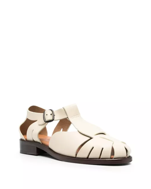 ivory white calf leather strap detailing almond toe buckle fastening branded leather insole flat leather sole