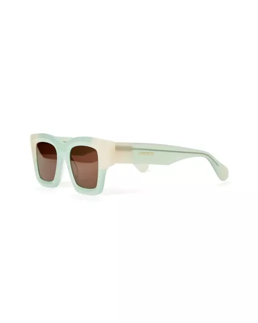 sage green acetate square frame brown tinted lenses logo-engraved arm straight arms curved tips These glasses come with a protective case.