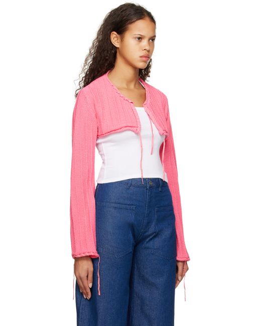 Rib knit organic cotton- and recycled polyester-blend bolero-style cardigan. Adjustable self-tie drawstrings and rolled edges throughout. Supplier color: Pink