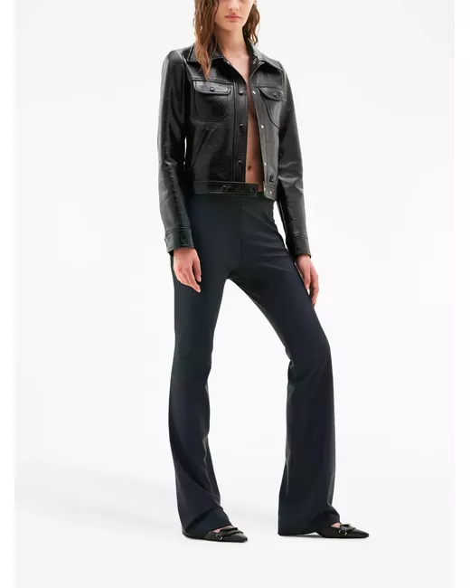 black oversized pointed collar two button-fastening chest pockets front press-stud fastening two diagonal pockets to the sides long sleeves straight hem full lining cropped