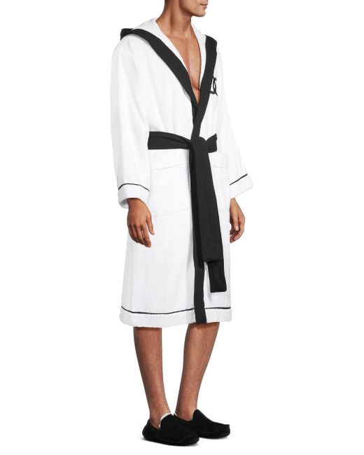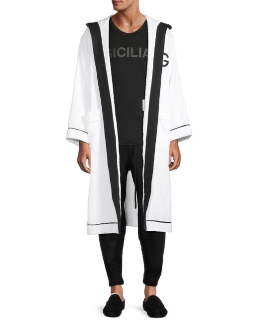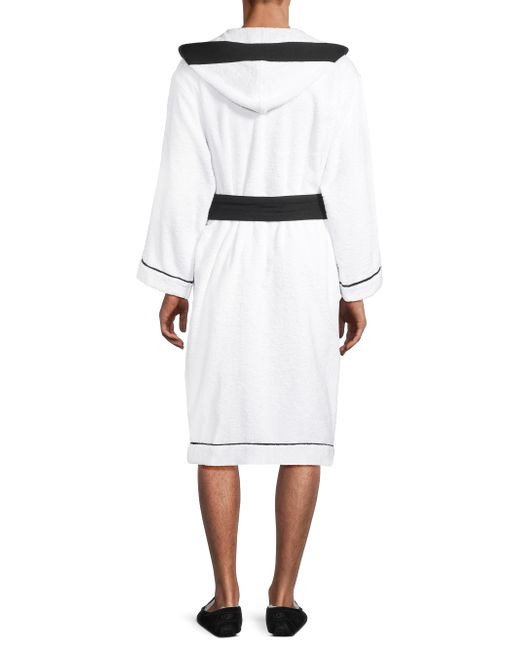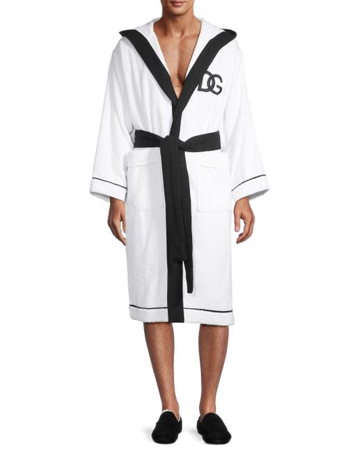 This classic bathrobe is styled with accent trim and finished with an embroidered DG logo on the chest. Hooded Long sleeves Self-tie waist Patch pockets 100% cotton Dry clean Made in Italy SIZE & FIT Model measurements: 6'2" tall, chest 40", waist 31" Model is wearing a US size Medium. Men Accessories - Loungewear And Pajamas > Dolce & gabbana > Saks Fifth Avenue > Barneys. DOLCE & GABBANA. Color: White. Size: Small.