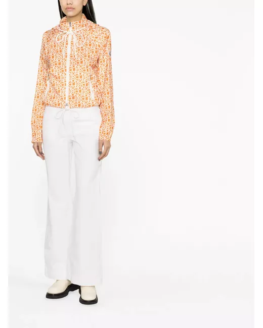 bright orange all-over logo print high neck concealed hood front two-way zip fastening long raglan sleeves elasticated cuffs two side zip-fastening pockets drawstring hem