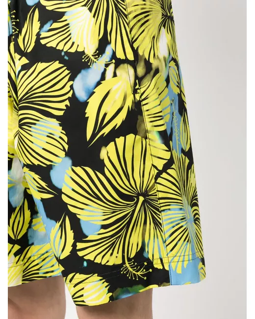 black/citron yellow/blue cotton floral print elasticated waistband above-knee length rear patch pocket