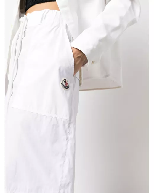 white cotton blend elasticated drawstring waistband belt loops side slash pocket two rear flap pockets wide leg knee-length