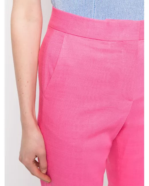 bubblegum pink pressed crease high-waisted concealed front fastening two side inset pockets two rear jetted pockets cropped leg