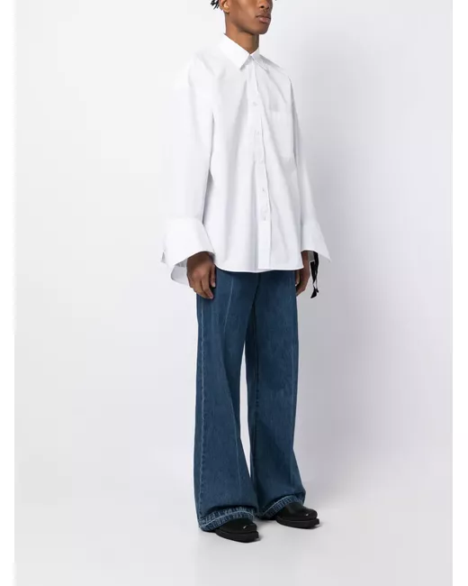 white cotton button fastening drawstring cuffs long sleeves slit pocket at the chest When buying this unisex item, keep in mind that it is graded in standard men's sizing.