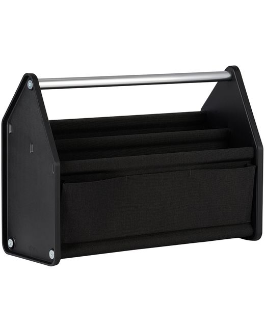 Lightweight dyed-through matte polymer caddy in black. Polished aluminum carry handle at top. · Designed by Konstantin Grcic, 2022 · Two patch pockets at face · Two compartment interior · Faille lining in black · H13 x W14.25 x D7 Supplier color: 12 deep black
