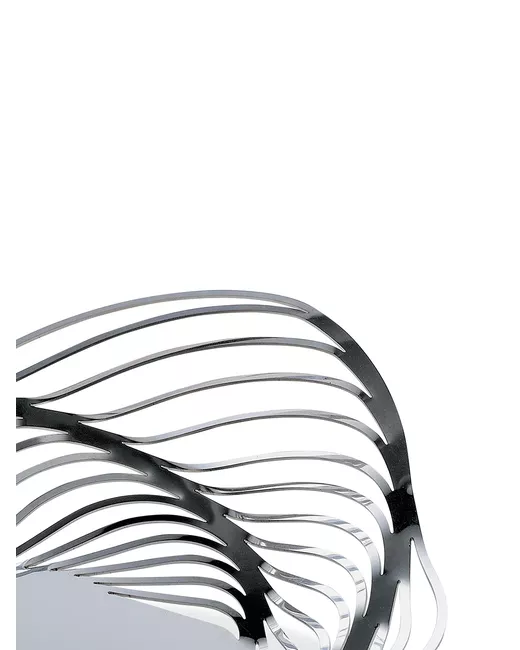 Silver stainless steel Trinity stainless steel fruit bowl from Alessi featuring asymmetric design, cut-out detailing and silver-tone hardware.