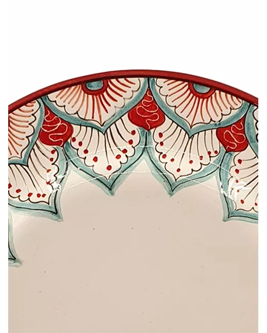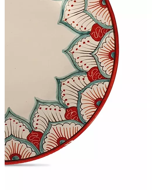 Multicolour ceramic Peacock dessert plate from Les-Ottomans featuring hand-painted design and circular body.