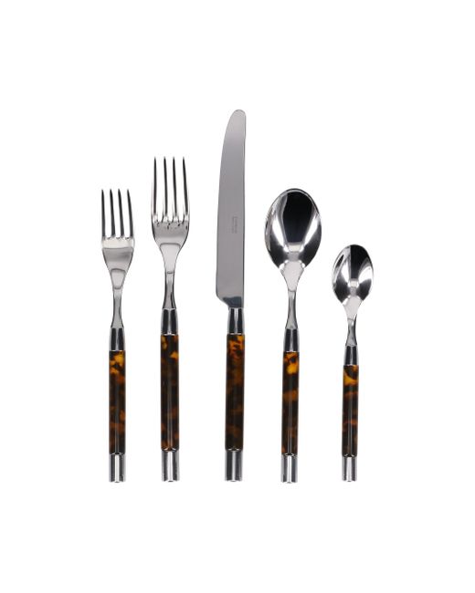 From the Conty Collection. With its cylindrical design featuring a natural caramel finish, Conty wood makes a bold statement. Like its namesake village in northern France, this flatware collection conveys elegance and character. Chrome elements in the handle further corroborate the contemporary charm of the set.18/10 steel/ wood. Dishwasher safe. Made in France. FIVE-PIECE SET INCLUDES Dinner Knife length, about 9.5" Dinner Fork length, about 8.25" Salad Fork length, about 7.5" Soup Spoon length, about 7.5" Teaspoon length, about 6". Gifts - Serveware > Capdeco > Saks Fifth Avenue > Barneys. CAPDECO. Color: Tortoise.