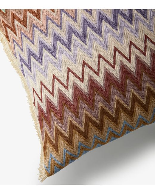 Featuring Missoni's iconic zigzags, the Margot cushion will make a striking introduction of color and pattern into your home. The decorative square pillow has a multicolored jacquard cover with eyelash fringe along two sides. Display it on a sofa or chair with other pillows from the brand.