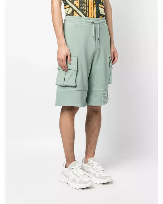 green tea cotton embossed logo to the side reflective detailing rear elasticated waistband drawstring fastening waist two side inset pockets two press-stud fastening side pockets two rear welt pockets knee-length