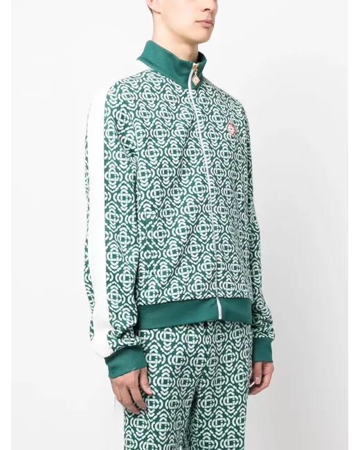 turquoise blue-green cotton blend monogram jacquard side stripe detailing logo patch at the chest funnel neck front zip fastening long sleeves elasticated cuffs and hem
