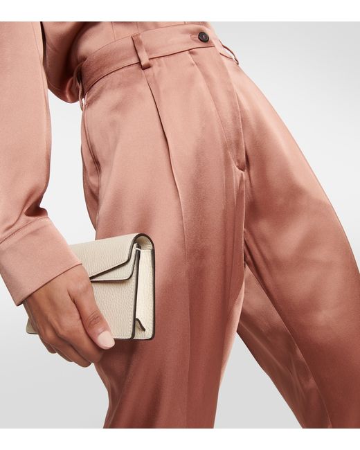 Made in Italy. Material: 65% acetate, 35% viscose. Lining: 54% viscose, 46% polyester. Designer color name: Antique Nude. Belt loops. Closure: zipper fly, button fastening. Pockets: side slit pockets, back pockets. Care instructions: dry clean.