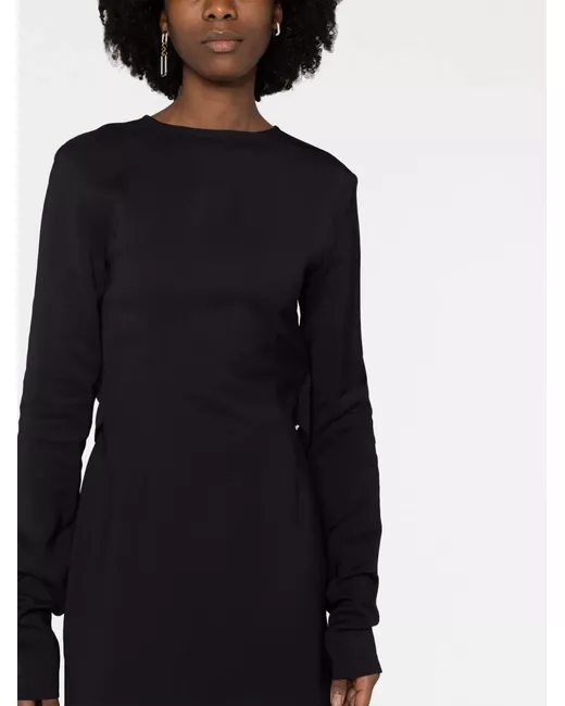 black round neck rear zip fastening cut-out detailing long sleeves straight hem