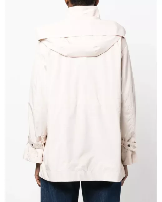 light beige detachable hood side zip fastening front press-stud fastening long sleeves belted cuffs straight hem two side flap pockets