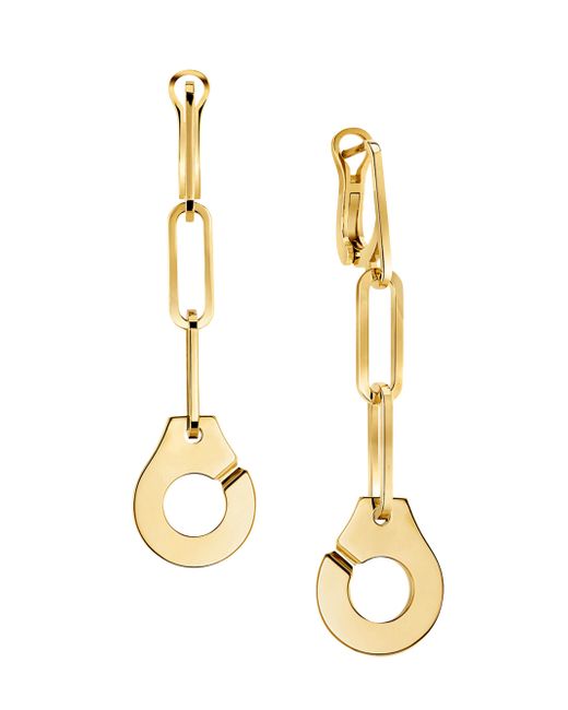 From the Menottes Collection. Dinh Van's Menottes earrings are crafted of 18K yellow gold. Suspended from paperclip chain links, this edgy piece features the label's signature handcuff drops. 18K yellow gold Leverback Made in Italy SIZE Drop, about 1.96". Fashion Jewelry - Designer Fine Jewelry > Dinh Van > Saks Fifth Avenue > Barneys. Dinh Van. Color: Yellow Gold.