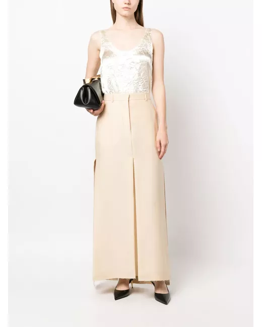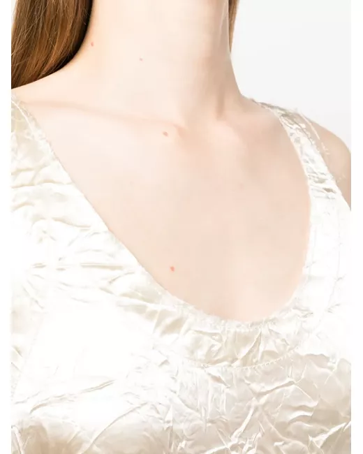 chalk white crinkled finish satin finish scoop neck V-back sleeveless straight hem