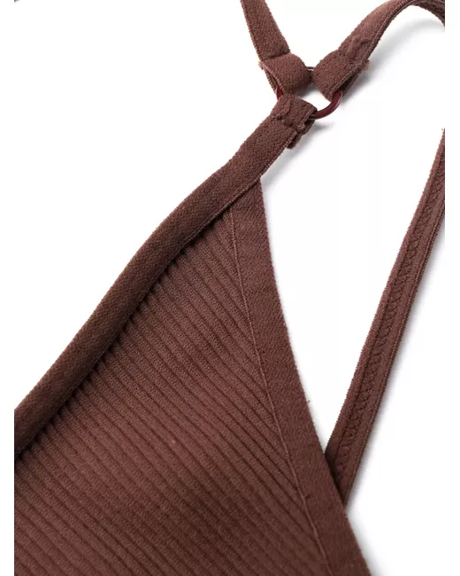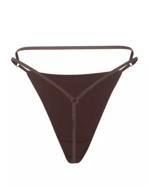 cedar brown stretch-design thong style strap detailing high cut ribbed knit thin straps slip-on style Just a reminder that this piece must be tried on over your own garments.