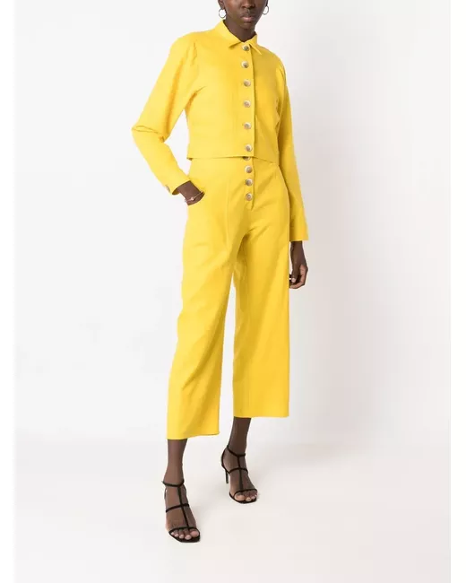 Women's Yellow cropped button-front jacket