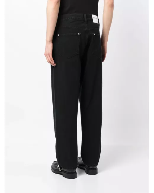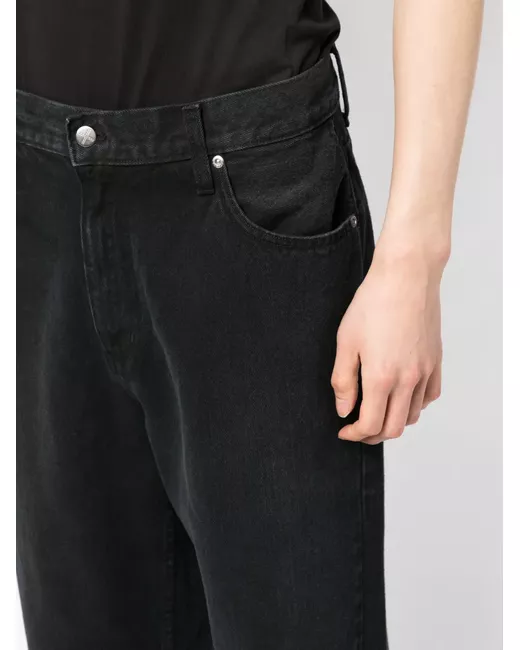 black cotton garment dyed logo patch to the rear mid-rise concealed fly and button fastening wide leg belt loops classic five pockets straight hem