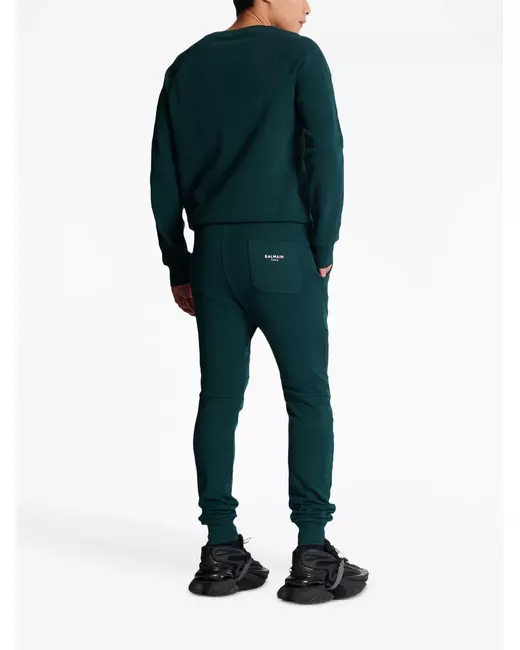 dark green organic cotton logo print to the rear ribbed detailing elasticated waistband elasticated ankles drawstring fastening waist two side inset pockets rear patch pocket