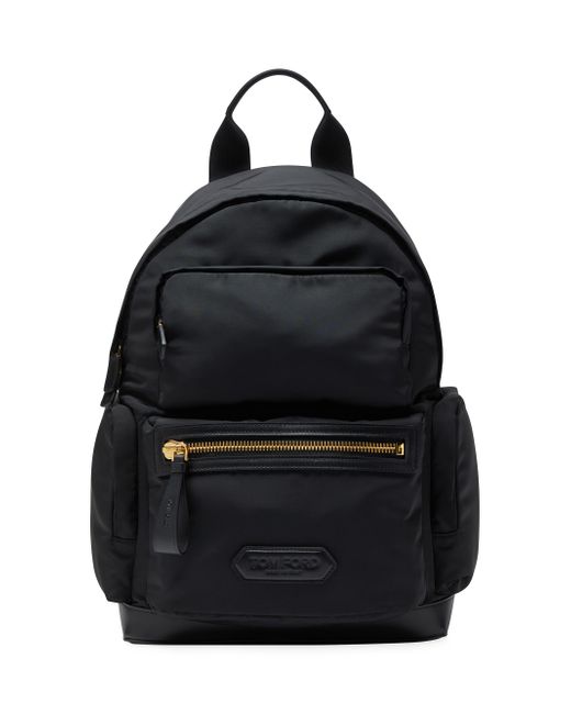 This Tom Ford backpack is crafted of polyester and leather, and features numerous zippered pockets at the front. With adjustable shoulder straps, this accessory is complete with a branded zipper pull and logo patch. Top handle Adjustable shoulder straps Zip front pockets Top zip closure 80% polyester/20% calf leather Lining: 90% nylon/10% acrylic Wipe clean Made in Italy SIZE 11.42"W x 16.93"H x 6.69"D ABOUT THE BRAND After 10 years of serving as the Creative Director for several international luxury fashion houses, Tom Ford launched his own line of optical frames, sunglasses and grooming in 2005. The following year he debuted menswear, and in 2010, women's ready-to-wear. His sleek, tailored aesthetic has since catapulted him to mega-brand status. Men Accessories - Leather Goods > Tom Ford > Saks Fifth Avenue > Barneys. Tom Ford. Color: Black.