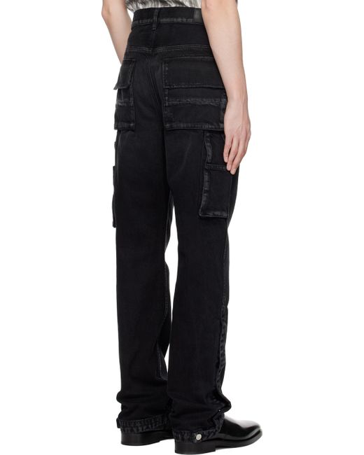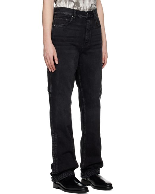 Non-stretch 12 oz denim jeans. Fading and whiskering throughout. · Belt loops · Logo patch at back waistband · Five-pocket styling · Button-fly · Button-tab and press-stud vent at cuffs · Hammer loop and patch pockets at outseams Supplier color: Aged black