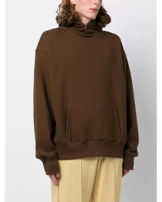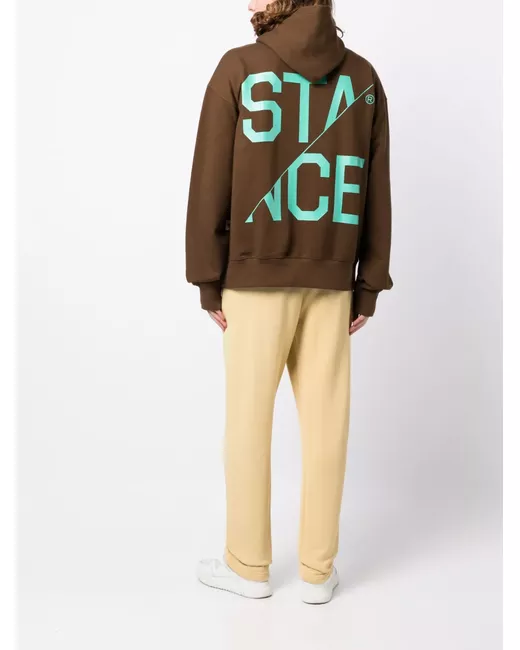 brown/aqua blue cotton logo print to the rear logo patch at the sleeve classic hood front pouch pocket long sleeves ribbed cuffs and hem