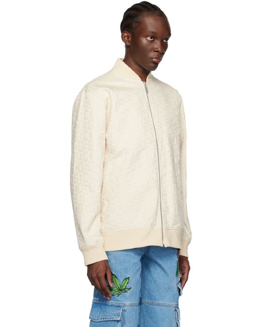 Cotton twill bomber jacket. Jacquard logo pattern throughout. · Rib knit stand collar · Logo charm at zip closure · Logo plaque at front · Welt pockets · RIb knit hem and cuffs · Patch pocket at interior · Fully lined · Silver-tone hardware Supplier color: Off-white