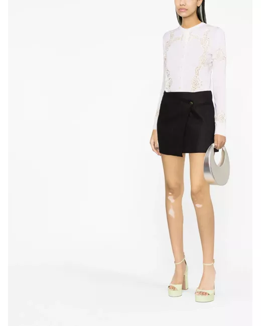 white cashmere blend lace detailing round neck front button fastening long sleeves straight hem
