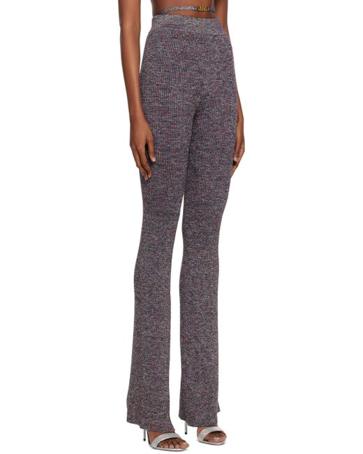 Flared rib knit viscose-blend lounge pants. Metallic thread detailing throughout. · High-rise · Flip-clasp strap at elasticized waistband · Vented cuffs Supplier color: Multicolor