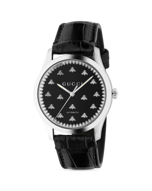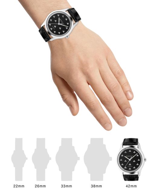 Adorned with the signature bee emblem throughout the onyx dial, Gucci's G Timeless Multibee stainless steel watch features a distinguished alligator strap. Swiss quartz movement Sapphire crystal Onyx dial Bee hour markers Second hand Polished stainless steel case Alligator strap Deployant buckle clasp Made in Switzerland FEATURES Case water-resistant to 5 atm SIZE Round case, 42mm (1.65") ABOUT THE BRAND First launched in 1921, the Italian luxury fashion house quickly became known for its fine leather craftsmanship and accessories. Today, the visionary brand continues to redefine fashion trends, while celebrating creativity and innovation. Gucci's contemporary designs include shoes, clothing and accessories-often boasting the distinctive Horsebit motif. Men Accessories - Watches And Gifts > Gucci > Saks Fifth Avenue > Barneys. Gucci. Color: Black.