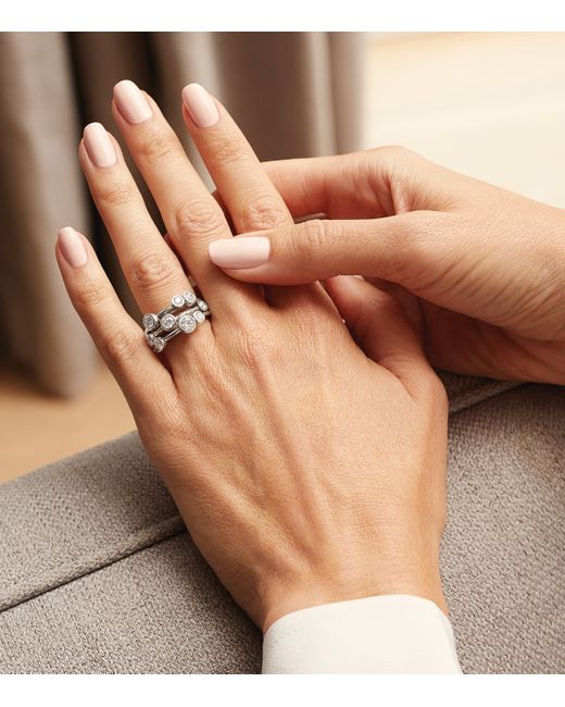 Stemming from Boodles' Raindance collection - one that's inspired by raindrops glistening in the sun - this wear-forever ring is set in shimmering platinum with brilliant-cut diamonds. Its contemporary, clean-cut shape serves as the perfect backdrop to the twinkling elements that have been scattered across it. While they may seem haphazard and disorderly, they are in fact meticulously ordered for a calculated and composed aesthetic.