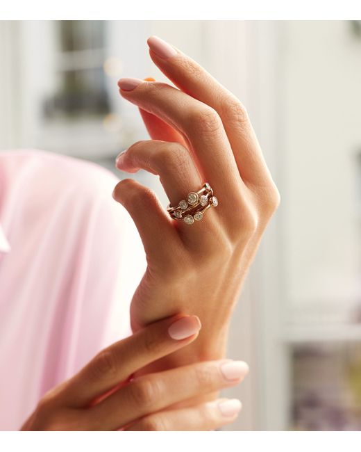 Stemming from Boodles' Raindance collection - one that's inspired by raindrops glistening in the sun - this wear-forever ring is set in 18-karat rose gold with brilliant-cut diamonds. Its contemporary, clean-cut shape serves as the perfect backdrop to the twinkling elements that have been scattered across it. While they may seem haphazard and disorderly, they are in fact meticulously ordered for a calculated and composed aesthetic.