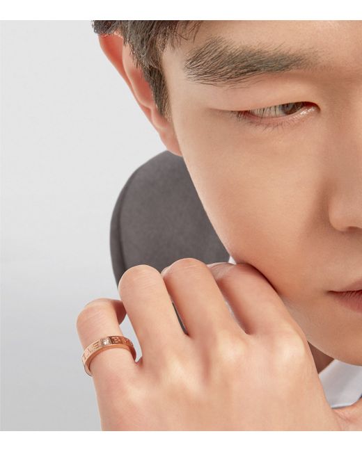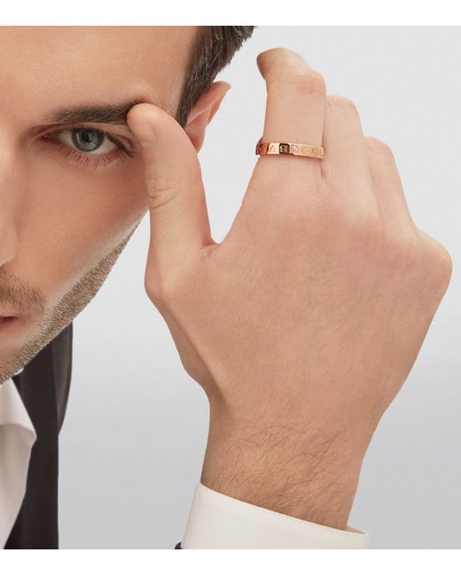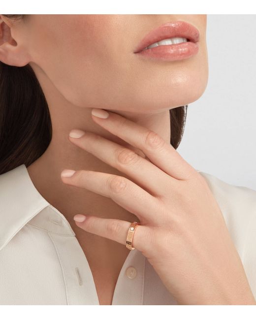 Simple yet undeniably powerful, the Bvlgari Bvlgari ring looks to the House's enduring love for the majestic city of Rome, taking inspiration from its unique ability to marry heritage and modernity. This wonderful piece is imagined in polished 18-karat rose gold and set with gleaming diamonds. It's an undeniable signifier of luxury - even more so thanks to the engraving of the brand name.