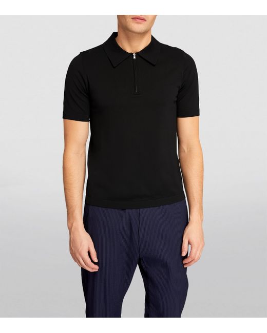 A refined staple for your smart-casual repertoire, this Sandro polo shirt demonstrates the French label's expert craftsmanship. Woven in a soft melange of fabrics, it adheres to classic tailoring with a spread collar and ribbed trims, while the zip fastening adds the contemporary element you'd expect. Versatile and lightweight in construction, this piece allows for a myriad of styling options. How to wear Harrods: Style with straight trousers and loafers.