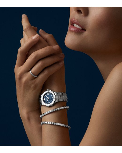 Inspired by the way light reflects off frozen water, the Ice Cube Pure collection from Chopard utilises clean shapes and lines, to create minimal pieces with a distinctly modern feel. Crafted from ethically sourced 'Fairmined' white gold, this multi-faceted ring features a series of geometric cubes set with sparkling diamonds, reflecting the frosty sharpness of ice.