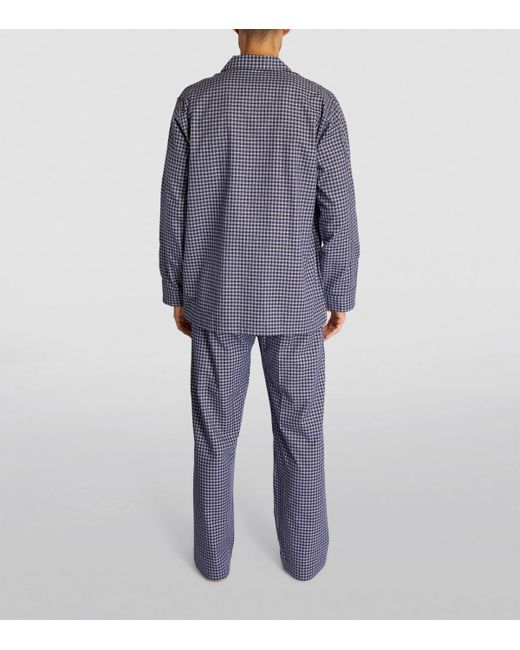 In pure brushed cotton, Derek Rose's check pyjama set brings lightweight luxury to the contemporary gentleman's nighttime wardrobe. This set includes a matching shirt and trousers, which can be worn together or mixed with plain jersey for versatile styling.