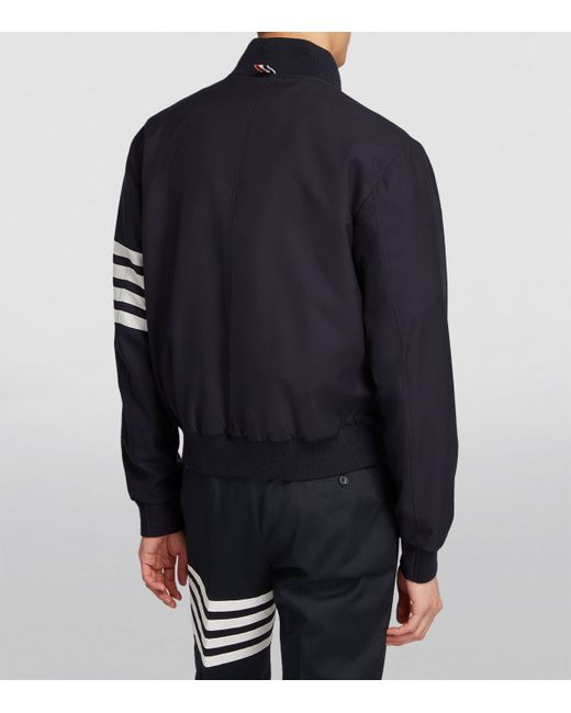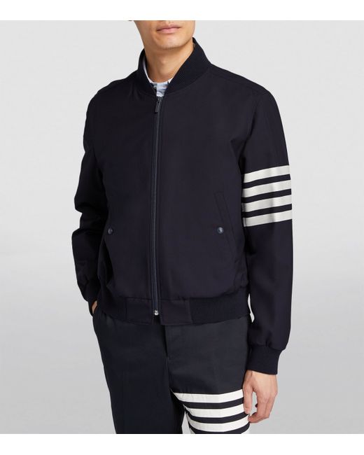 That's right, we're referring to Thom Browne's iconic 4-Bar stripes, here proudly shown off on the arm of this wool bomber jacket. A silhouette that itself comes with an estimable amount of history, it's a piece that will work well with both your off-duty collection and for relaxed days when the boardroom calls, but not urgently - you're simply there to check up on your thriving business, of course.