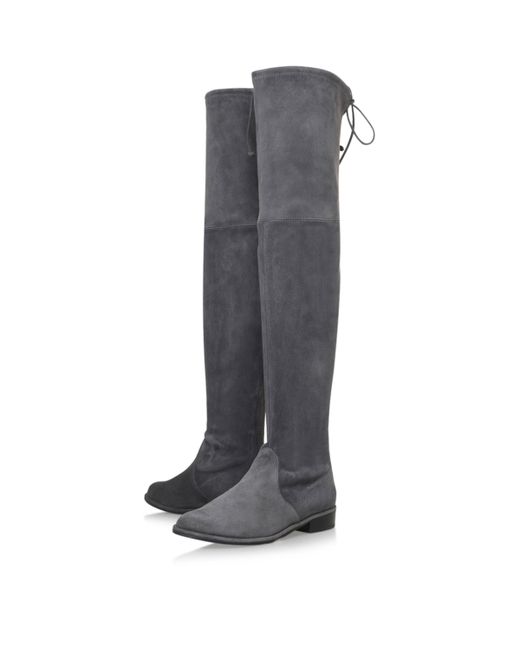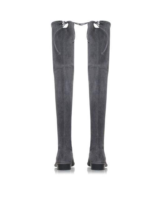 Stuart Weitzman's Lowland boots are a luxurious thigh-high style for your collection. Crafted from soft stretch suede, they sit on a comfortable low stacked heel, gripped rubber sole and feature a drawstring tie accent the top. Pair with everything from second-skin jeans to sweater dresses for a sleek finish.
