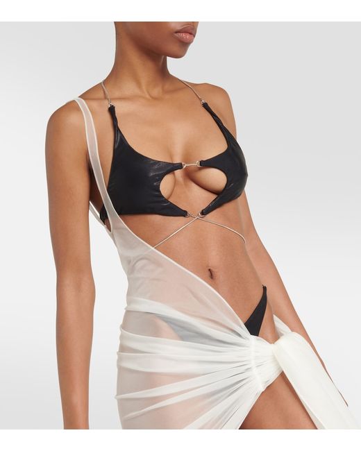 Closure: self-ties. Material: 90% polyamide, 10% elastane. Designer color name: Snow. Care instructions: hand wash.