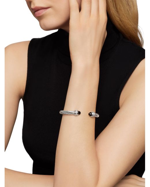 David Yurman's artistic signature, Cable began as a bracelet that he hand-twisted from 50 feet of wire. For the past 30 years, he has evolved the twisted helix into a myriad of designs. Sterling silver Pavé diamonds, 0.41 total carat weight Bracelet, 7mm SIZE Bracelet, 3mm Extra Small wrist circumference, 5"-5.5" (12.7-14cm) Small wrist circumference, 5.5"-6.0" (14-15.2cm) Medium wrist circumference, 6.0"-6.5" (15.2-16.5cm) Large wrist circumference, 6.5"-7.0" (16.5-17.8cm) Extra Large wrist circumference, 7.0"-7.5" (17.8-19cm) Please note: If you are between sizes, please opt for the larger size. Lsd Jewelry - David Yurman > David Yurman > Saks Fifth Avenue > Barneys. David Yurman. Color: Black Onyx. Size: Medium.