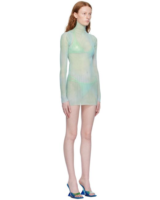 Sheer rib knit nylon-blend dress. Tie-dye effect throughout. · Turtleneck · Unlined Each item is unique. Please note that coloration and finishings may vary. Supplier color: Light blue