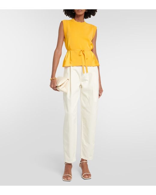 Made in China. Detachable belt. Material II: 100% polyester. Designer color name: Goldenrod. Material: 82% viscose, 18% polyester. Care instructions: dry clean.