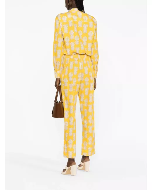 sunflower yellow cotton poplin texture signature pineapple motif concealed front button fastening two chest flap pockets slip pockets to the sides elasticated waistband wide leg
